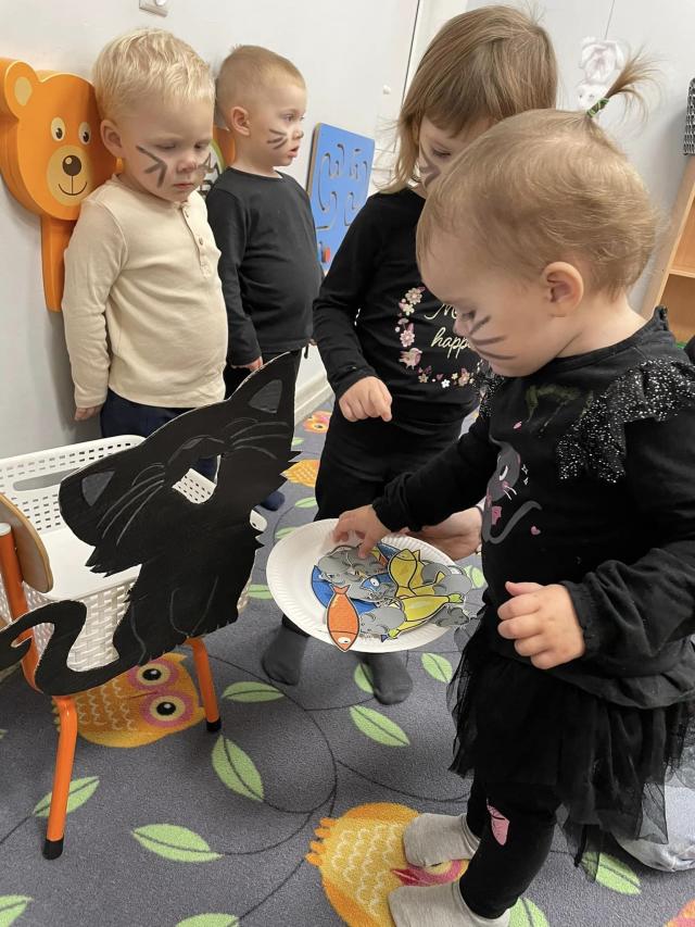 Żłobkowe sówki wcieliły się w rolę czarnych kotków