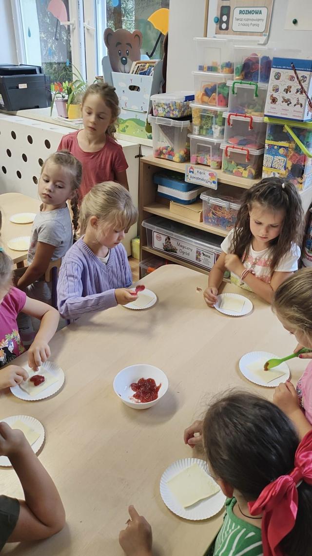 Biedroneczki 🐞 w ramach zajęć kulinarnych wykonały ciasteczka z dżemem truskawkowym 😊