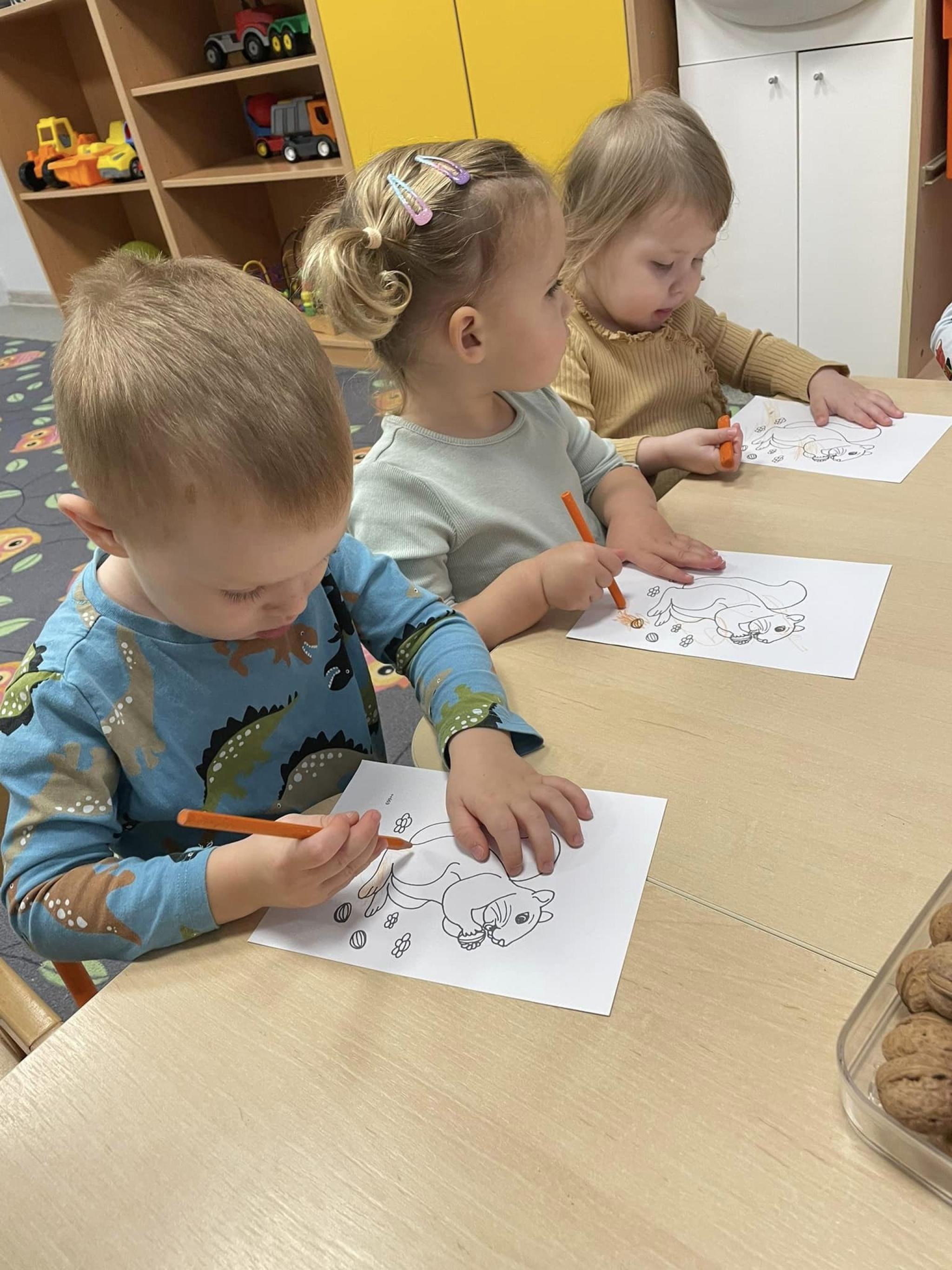 🐿️ Usprawniamy motorykę małą. Dzieci pomagały zgromadzić wiewiórce zapasy jedzeniowe na zimę.